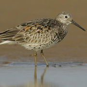 This large and diverse family of shorebirds is made up mostly of northern breeders that migrate long distances. Their highly migratory nature leads them astray fairly frequently, and rarities often show up outside their normal range. Many of these mostly coastal birds forage in relation to the tides, rather than the time of day. They use a variety of foraging techniques, but the most common techniques are picking food from the ground or water, or probing into wet sand or mud. Those that probe generally have sensitive bills that open at the tips. Most members of this group eat small invertebrates. Many make dramatic, aerial display-flights during courtship. Nesting practices vary, but both parents typically help raise the young. Clutch size is usually four, and both parents generally incubate. The young are precocial and leave the nest within a day of the hatching of the last chick. Most feed themselves, although the parents generally tend the young for a varying period of time. The female typically abandons the group first, leaving the male to care for the young until they are independent.