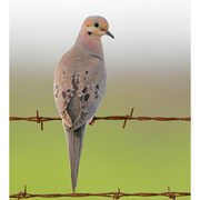 Mourning Doves forage mostly on the ground, visit bird feeders, and often roost on telephone or power lines. In July and August before migration, they form post-breeding flocks. The Mourning Dove produces a mournful hooting, which is often mistaken for an owl.