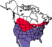 Some birds remain year round over most of their breeding range, but many move south in the fall, migrating in flocks mostly by day. Migrants arrive on the breeding grounds in March or April, and most leave by October.