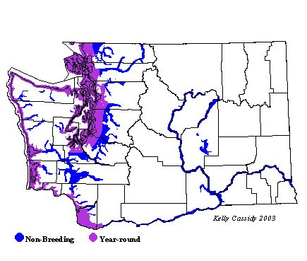 The largest breeding colonies in the state are at Protection, Tatoosh, and Carroll Islands in Clallam County, Gunpowder Island in Pacific County, East Sand Island in the Columbia River estuary, Colville, Smith, and Minor Islands in San Juan County, and Destruction Island in Jefferson County.