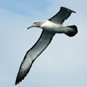 The albatrosses are large seabirds with very long wings. They have a unique flight, soaring on the wind currents above the waves, hardly ever flapping their wings, possibly even sleeping on the wing. This flight requires strong winds, and in the absence of these winds, they will be found swimming on the water's surface. They also forage on the surface of the water; some may dive under water, while others dabble at the surface. Albatrosses may live a very long time, more than 40 or 50 years in some cases. The majority of albatrosses live in the Southern Hemisphere and breed during the southern spring and summer. Even those that breed in the Northern Hemisphere breed during our winter. Two separate tubes are located on either side of the albatross's bill.