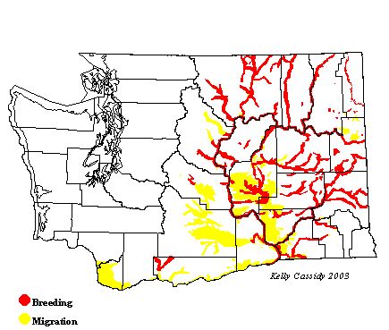 Wilson's Phalaropes are most easily found in eastern Washington, where they are fairly common breeders in appropriate habitat--mostly east of the Columbia and Okanogan Rivers, especially in the Potholes area (Grant County) and the Okanogan Valley (Okanogan County). Breeding Wilson's phalaropes have also been found in some years in the Ridgefield and Nisqually National Wildlife Refuges and in the Everett area.
